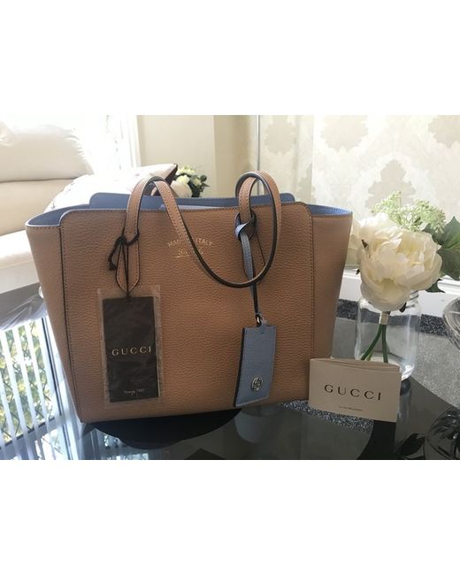 100% Authentic Brand New Beige Gucci Swing Tote Bag! Purchased from Selfridges A spacious Gucci Swing tote bag in beige leather. It can be worn as a handbag or as a shoulder bag. The interior closes with a magnetic closure. Collections are welcome too.
