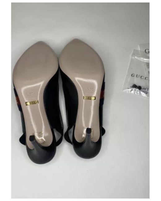 Gucci black Leather Malaga Kid Web Bee Pump. Size 35. Condition is "New with box". Dispatched with Royal Mail 1st Class.