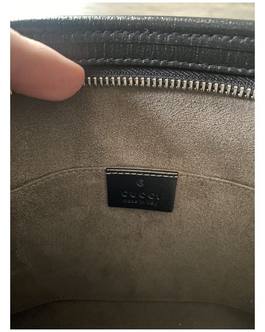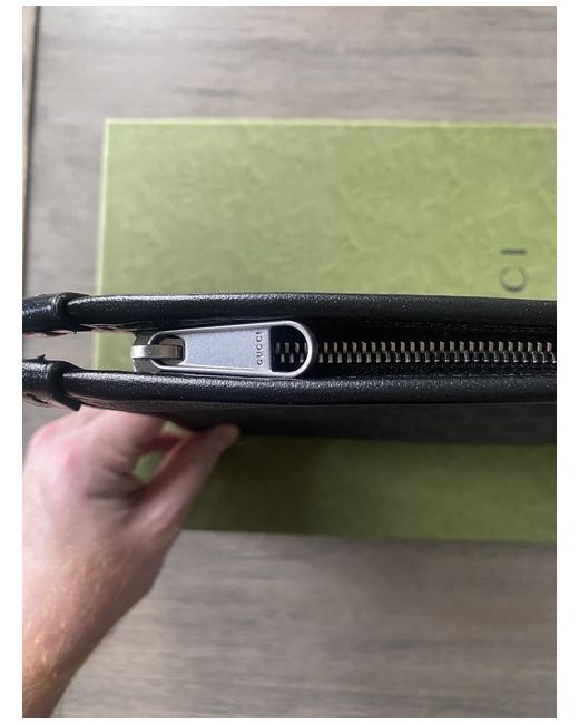 Men’s Gucci pouch, unwanted gift, The Ophidia line is elevated resulting in a contemporary offering of signature small leather accessories. This pouch appears in a black and dark grey variation of the GG Supreme canvas. RRP £750.00