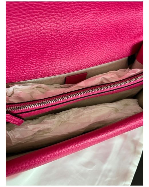 This genuine Dionysus shoulder bag, in a beautiful fuchsia pink colour, has a stunning tiger head closure enhanced with black Swarovski crystals. The sliding chain strap can be worn multiple ways, changing between a shoulder and a top handle bag.