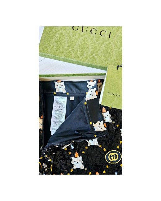 Gucci Interlocking G Animal Sequin Mini Skirt Size: IT 40 (fits like a UK 8/10) Condition: New with tags Description: From Gucci's 2023 Special Projects Plus collection, this stunning mini skirt features playful animal artwork by Angela Nguyen, also known as 'Pikarar.' Made from luxurious multicolor viscose, it showcases vibrant anime-inspired prints with Gucci's iconic Interlocking G pattern. Lined for comfort Regular waist with side zip closure Length: 15.7 inches (based on size IT 40) Made in Italy. A rare, collector's piece that's perfect for elevating any outfit! Original retail price: Over £3,150. Open to reasonable offers. Worldwide shipping available!