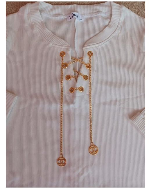 White striped blouse.Bqgand La coca.Golden chains.3/4 sleeve.Chest 55cm.long 61cm.95% cotton 5% elastane.Ala Chanel.