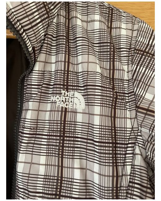 Ladies The North Face Zip-Up Softshell Jacket in size small. Brown and cream checked pattern. Shower proof, warm and cosy.