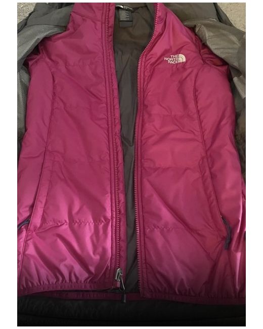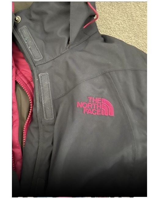 Genuine Northface HYVENT 2 in 1 jacket Navy outer jacket and purple/pink inner removable jacket with slight padding Size XS (fits me and I’m a size 8-10) Bought for around £100 Worn once for a short period (selling as I prefer a full length jacket) Lovely warm dry jacket Any questions please ask