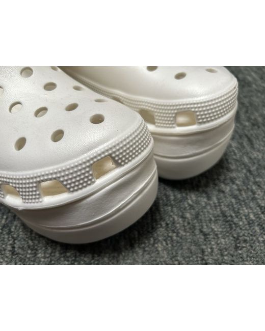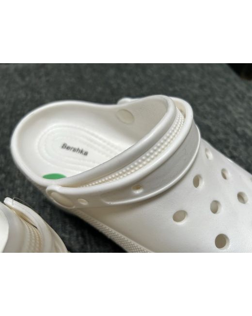 Unworn white plastic platform clogs by Bershka. In the style of Crocs. Heel height 7 cm. Platform height at toe is 5cm. Size 4/EU 37.
