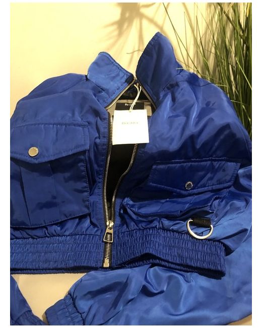 Add a touch of sophistication to your outfit with this stunning blue cropped bomber jacket from Bershka Crafted from lightweight polyester , this jacket is perfect for any occasion, whether it's a casual day out or a party. The regular fit and long sleeves provide comfort and style. With its vibrant blue colour and cropped length, this jacket is perfect for the summer and spring season. This jacket is ideal for women who love a fashionable yet practical look. Perfect for travel, parties, or simply for everyday wear, this Berksha bomber jacket is a must-have for any fashion-forward woman.