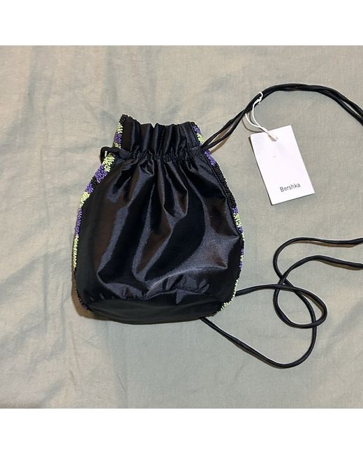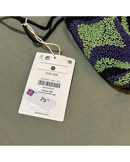 bershka bag, patterned with purple, black and green beads, long strap, can be a shoulder bag or crossbody brand new with tags, never worn rrp £29.99