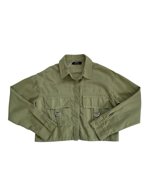 - 55% lyocell 45% cotton - cropped box silhouette - long sleeves with button cuffs - cancelled button up placket - two patch pockets at front - collared Measurements: - shoulder to shoulder 19” - armpit to armpit 20” - sleeve 20.5” - length 17.5” No return accepted. Thank you for your interest.