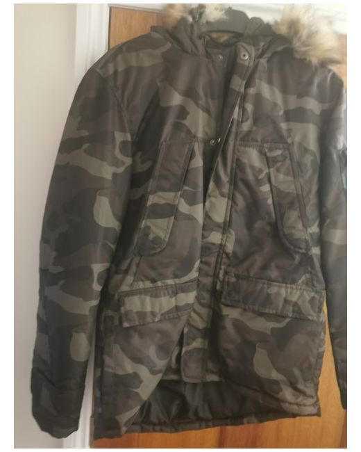 This is a Mans Bershka coat in size L. The coat features a zip closure and comes in a stylish green color. It as2 front pockets, 2 side pocket and 2 sleeve pocket with a zip It is designed in a regular size type, making it a comfortable fit for everyday wear. Perfect for cold day and nights , with hood, this coat is a fashionable and practical choice for the colder seasons.