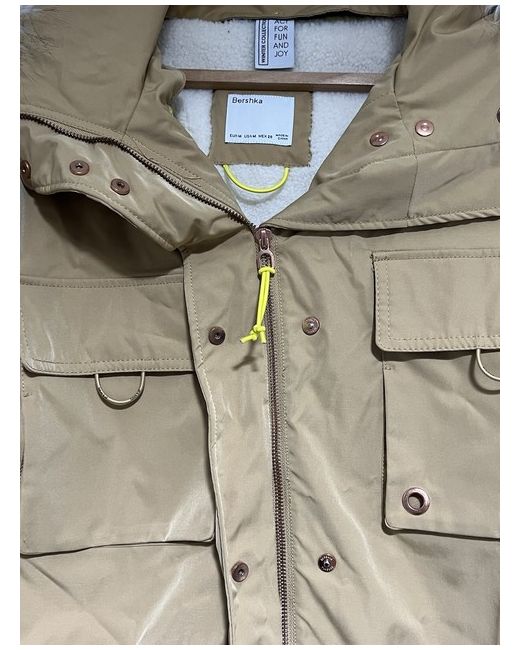 Embrace the cooler seasons with the Bershka women's puffer jacket, a perfect blend of style and warmth. This medium-sized, beige jacket provides a chic solution to your outerwear needs, crafted from durable polyester that promises to keep you cosy without compromising on fashion. Featuring a practical zip closure, the jacket ensures ease of wear and a secure fit. The regular size type ensures a comfortable fit for a variety of body shapes. Whether you're out for a casual stroll or meeting friends, this Bershka jacket is an excellent addition to your wardrobe, offering both comfort and contemporary style.