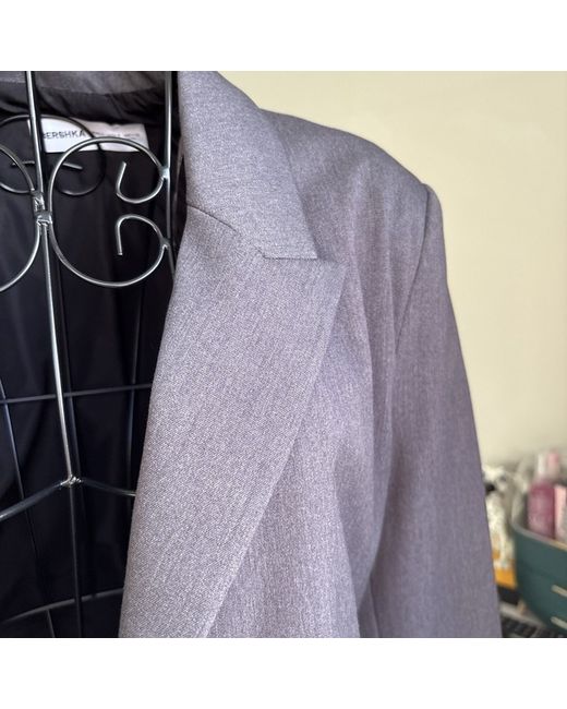 This women's Bershka jacket is in a stylish grey colour, with a regular fit and long sleeves. Made from polyester, it is suitable for various occasions including travel, casual outings, and business settings. The jacket features a basic style, perfect for adding a versatile layer to your wardrobe. With a size Small and regular size type, this new jacket without tags offers a trendy option for those looking for a chic outerwear piece.