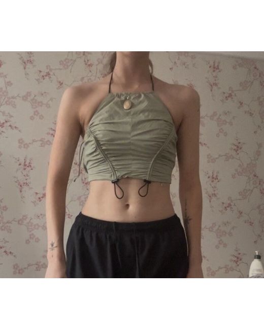 Add a pop of colour to your wardrobe with this stunning green Bershka halter top. Perfect for any occasion, this sleeveless crop top features a flattering slim fit and a stylish halter neckline. The top is made from high-quality materials and is designed to last. The vibrant green colour is sure to turn heads, and the halter strap adds an elegant touch to the overall design. This top is perfect for pairing with your favourite jeans or skirt for a casual look or dressing up for a party or cocktail event. Don't miss out on this must-have addition to your wardrobe.
