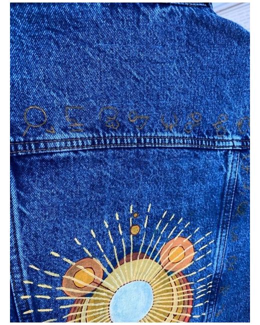 *CUSTOM PAINTED IKARIS ETERNALS JACKET* Gold details are designs from his suit including small symbols across the back, 4 circular patterns on front pockets and shoulders and an inspired piece covering the back. Painted with less coats to give it a ‘brass’ look. Made with high quality fabric paints, never worn, tag still attached, selling on other sites Maintenance and Care: Only hand wash very gently on affected areas, avoid machine washing otherwise the paint will be removed Durable to light rain but not tested in heavy rain