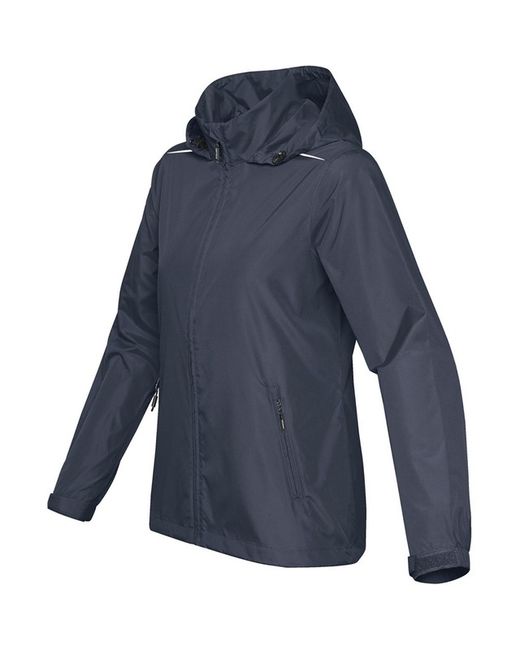 STORMTECH Showerproof D/W/R finish outer shell. Adjustable Hood, Stowable Hood into Collar. Touch fastening Adjustable Cuffs. Set-in Sleeves. Adjustable Hem. Reflective Trim on Shoulder. Composition: 100% Polyester Pongee.