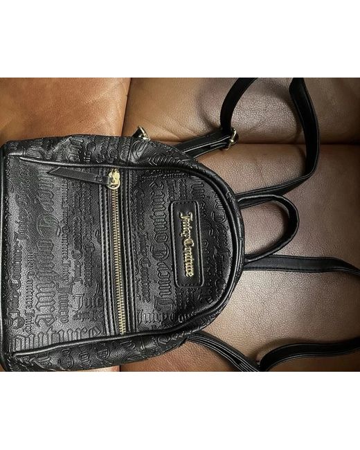 Crafted for the modern woman on the go, this sleek Juicy Couture mini backpack is a fusion of style and convenience. It boasts a timeless black exterior, complemented by the brand's signature logo pattern and elegant gold-plated hardware. The backpack features a secure zip closure, a practical top handle, and additional straps for a comfortable fit, making it an ideal choice for daily use or business occasions. The backpack is accompanied by a matching card wallet and key chain, all designed with a focus on compactness and functionality. The interior is lined with a durable fabric, ensuring your belongings are protected. This accessory is a versatile addition to any wardrobe, encapsulating the designer and gothic themes that Juicy Couture is known for.