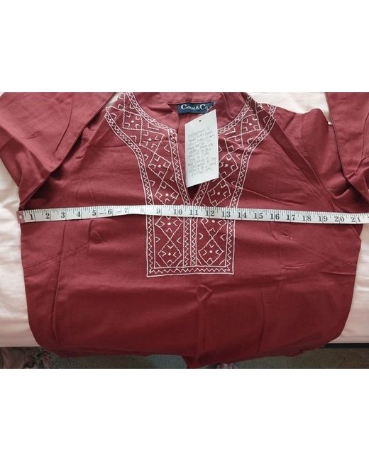 Bought from QVC but never worn. Nice detail round the neckline and cuffs. Elastic on the trouser has lost its elasticity due to storage so will need to be replaced. Inside leg 30".