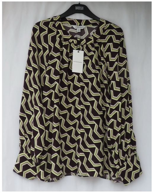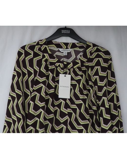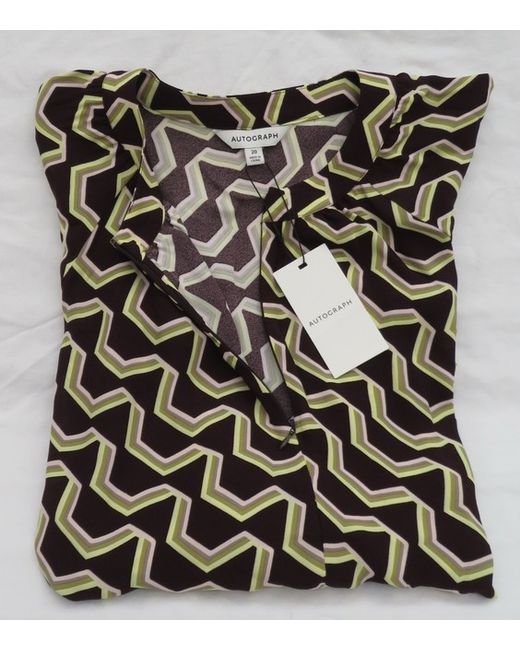 Women's Brown Ladies Marks Spencer Mix Patterned Zipped Neck Top 14