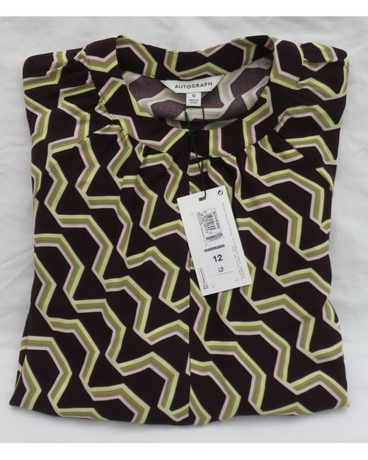 Crew Neck With Zipped Fastening. Ladies Marks And Spencer Autograph. Brown Mix Top. 2 Shades Of Green And 2 Shades Of Pink. Brown Background With.