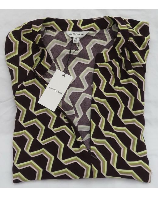 Crew Neck With Zipped Fastening. Ladies Marks And Spencer Autograph. Brown Mix Top. 2 Shades Of Green And 2 Shades Of Pink. Brown Background With.