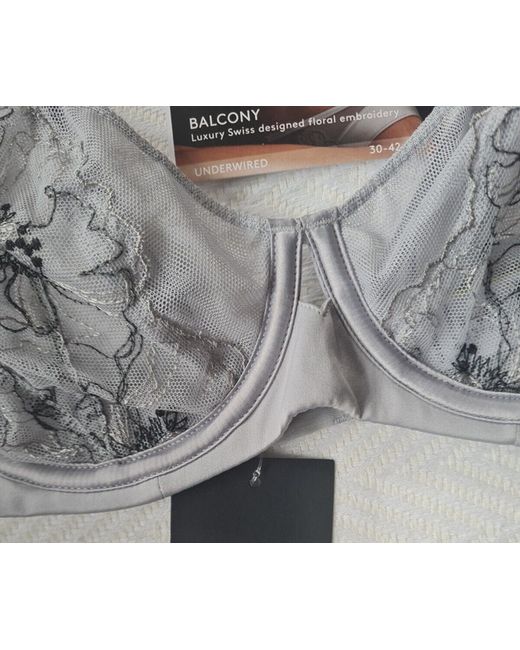 Women's Gray MS Allure Embroidered Grey Underwired Balcony Bra 32C BNWT