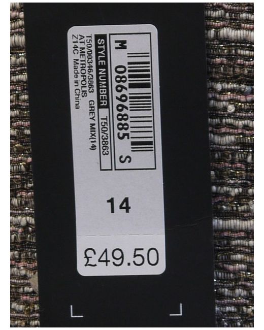 Back zip & button fastening. Fully lined. Back split. Side decorative trim. Length 23" 58.5 cm. Size 14 waist 34" 86 cm. Lining 100% polyester. Fabric 97% polyester 3% elastane.