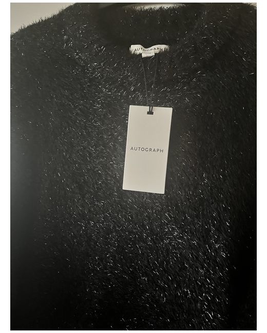 New M&S Autograph black fluffy longline crew neck jumper, size 12. Length - 28” Material - 43% polyamide and polyester, 14% metallised fibres.