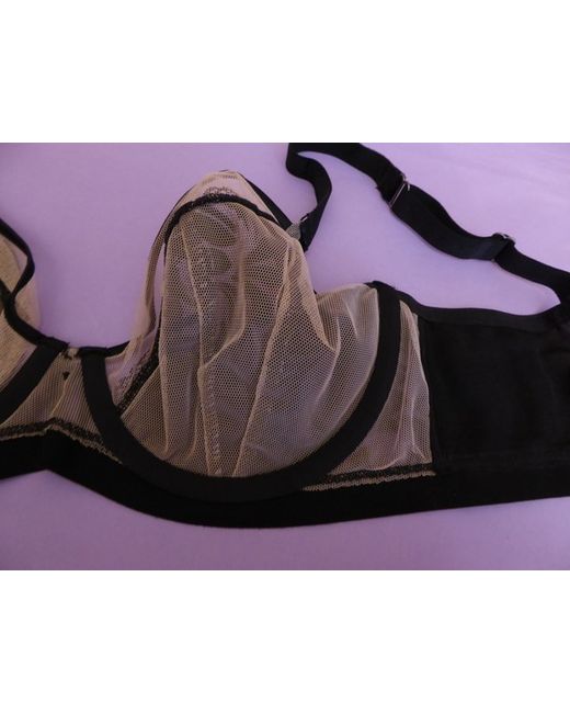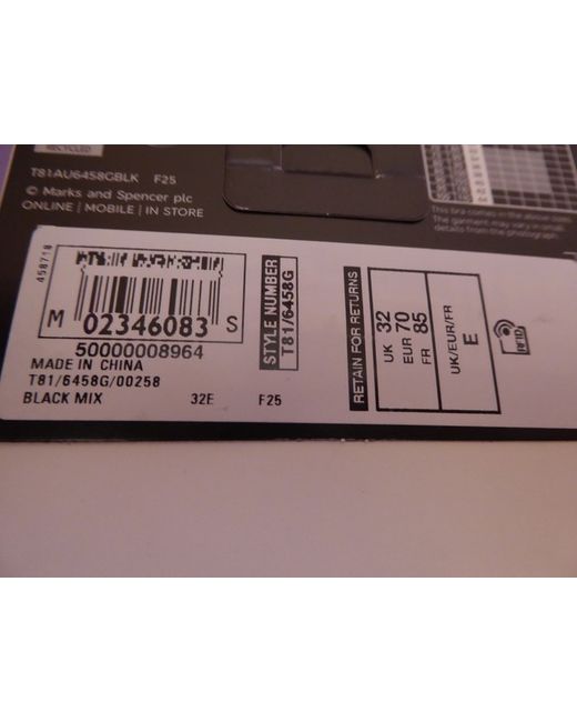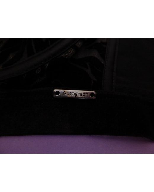 UK 32E / EU 70F / FR 85F / CN F70. New black balcony bra with raised black flock floral patterning. Marks & Spencer Autograph.