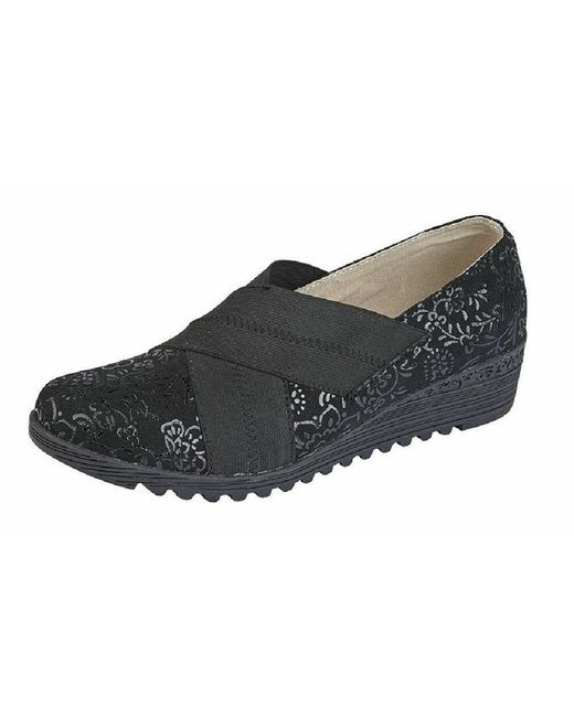 BOULEVARD BLACK SUEDE ELASTICATED WEDGE SLIP ON LOAFER SIZE 3 ONLY. Boulevard Present A Flexible And Comfortable Slip On Wedge Loafer. The Sturdy Rubber Sole Provides Traction, Whilst A Chunky Wedge Heel Gives Desired Height as well as support.
