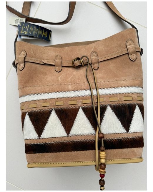 Brand new with tags 100% Genuine POLO RALPH LAUREN bull print Aztec Leather Suede Patchwork Brown Bucket Bag RRP£689 100% authentic Adjustable Strap Bow Detail For Adjustable Top Beaded Detail Composition: 100% Cow Leather Colour: Beige. Brown Care: Hand wash