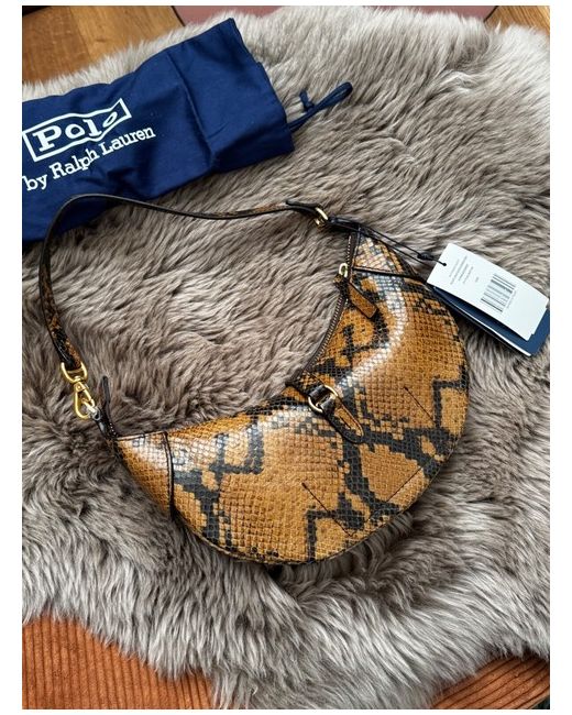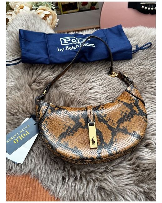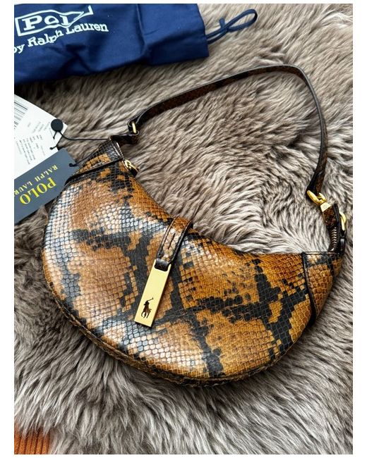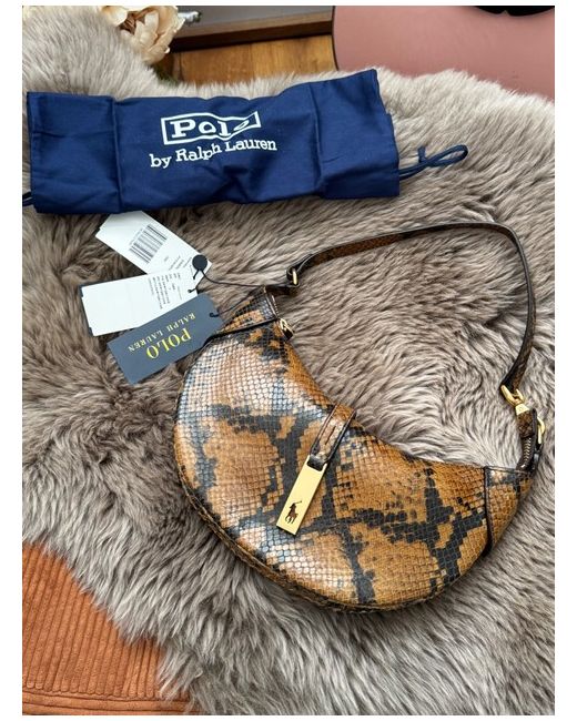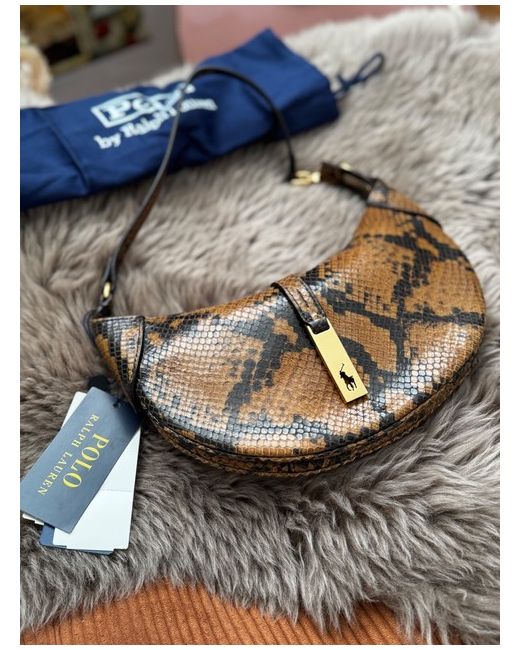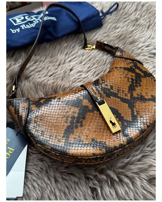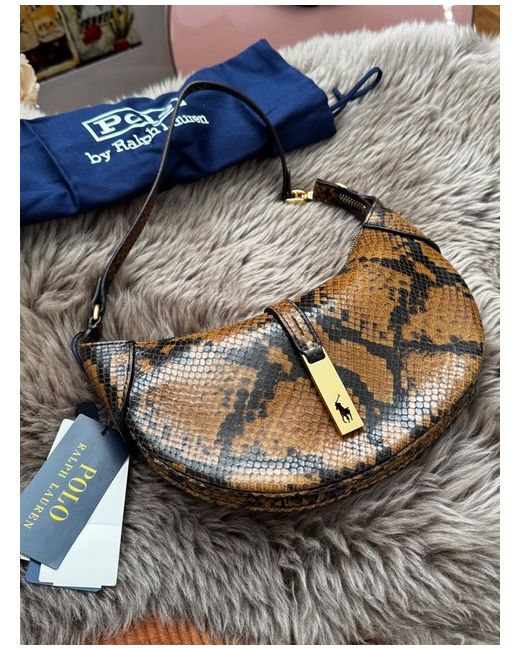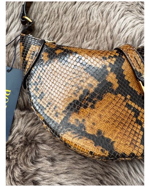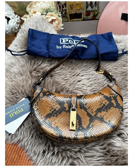 Women's Brown Polo ID Python Reptile Print Croissant Shoulder Bag