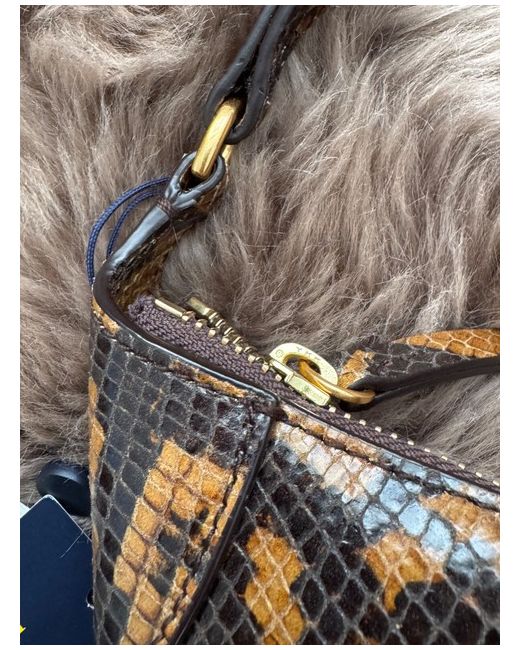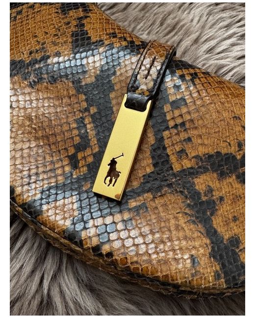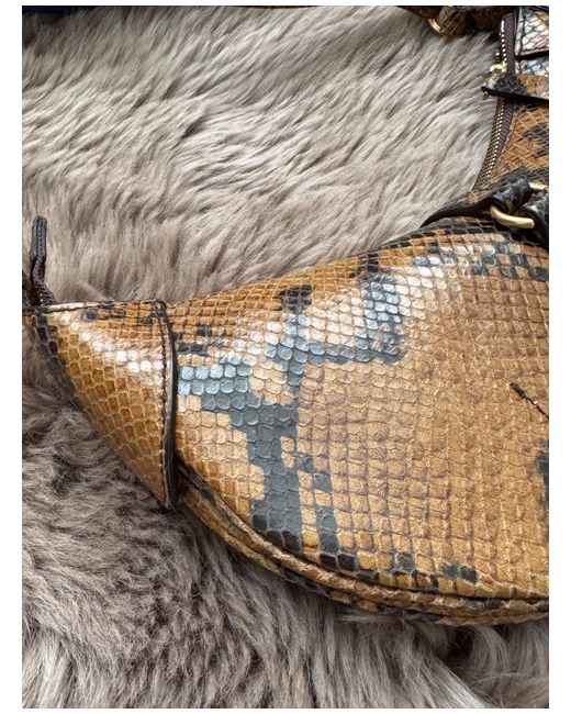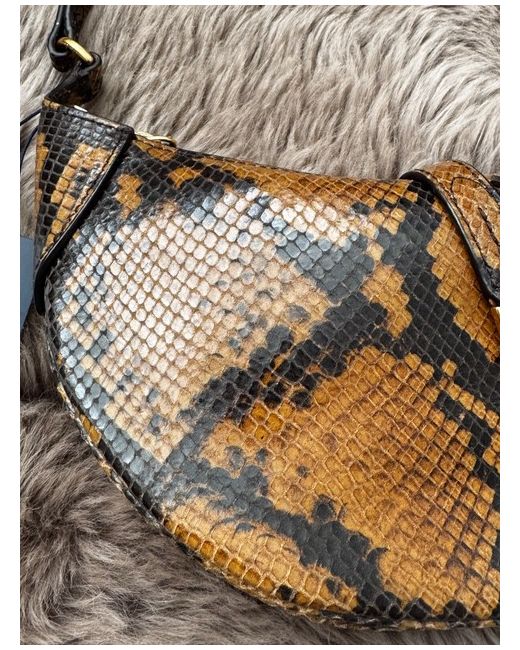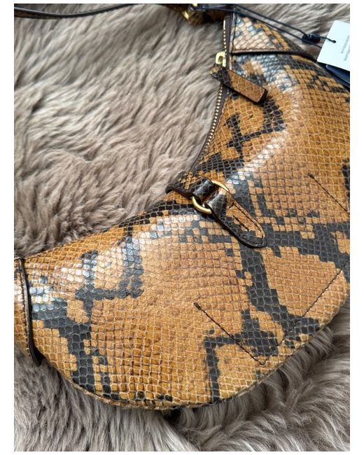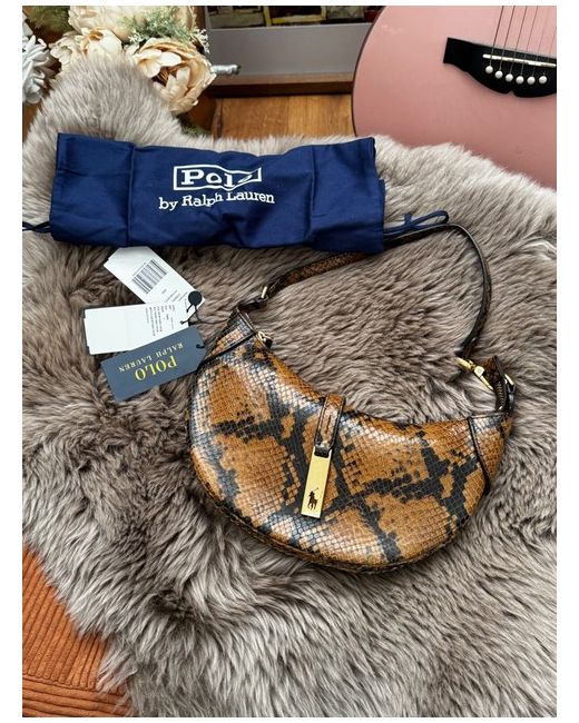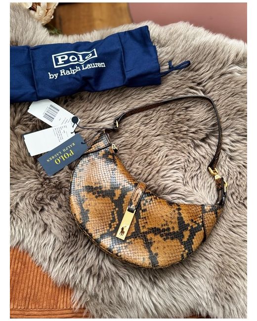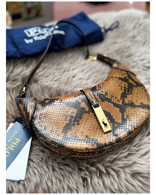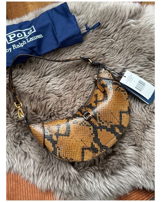 Women's Brown Polo ID Python Reptile Print Croissant Shoulder Bag
