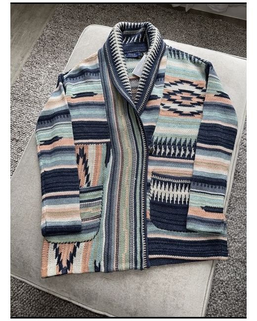 749 RALPH LAUREN Fair Isle Aztec rrl wool Jacquard-Knit Belted Shawl Cardigan S