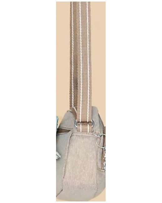 Brand new, unused, just stored in a smoke free home. please see pictures for information regarding size,etc... a QVC bought purchase. It is a solid little bag, lovely neutral colour with contrasting striped strap. Has the popular key fob as monkey attachment.
