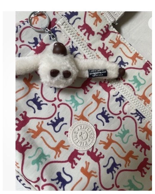 Lovely Kipling Monkey Pattern Cross Body Bag in beige.