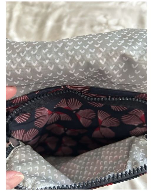 Kipling crossbody/shoulder bag - new. Front hidden pocket. Rear zipped pocket. Navy blue/pinky crimson coloured butterfly pattern. Furry monkey - Matt.
