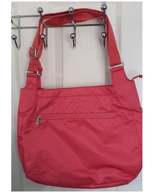 Never used Kipling Shouder bag with adjustable straps Medium Red colour with light sheen to it Zipped front pocket Back zipped pocket Inside zipped pocket Pen slot, 2 other bigger slots inside Main zipped compartment Silver monkey & hardware