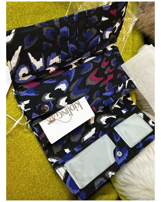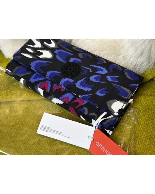 It is a long wallet with a snap button closure. The wallet has accents of zip, snap button, and the Kipling logo. The colours include multicoloured of black, blue, fuchsia, white and purple and everything you need to keep your cash, cards and essentials secure, including multiple card slots, two receipt holders and three internal pockets.