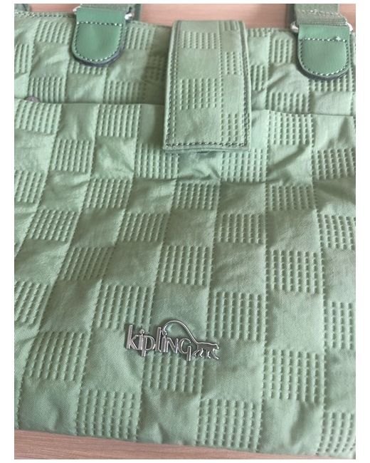 Kipling Denisa Square embossed hand bag with detachable shoulder strap Metal robot monkey Zip top main compartment with flap over secure. Zip pockets to front and rear. Inside there are slot pockets, a zip pocket and key fob chain. Green Size Width 29cm Depth 9cm Height 25cm