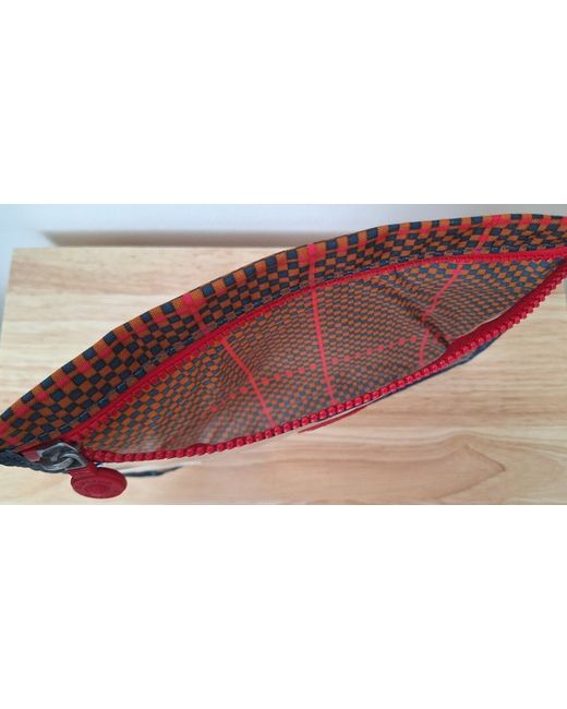 Kipling clear fronted pouch. Red Kipling logo matches the red zip, and highlights the red tones in the print, which also contains blue and burnt orange colours.