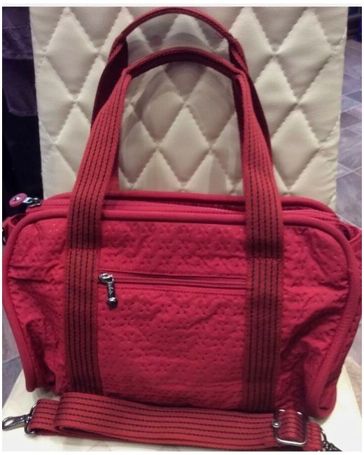 Black Pom Pom Monkey. Radiant Red. Handle drop: 18cm (7.1"). Bag (h x w x d): 20cm x 33.5cm x 15cm (7.9" x 13.2" x 5.9").