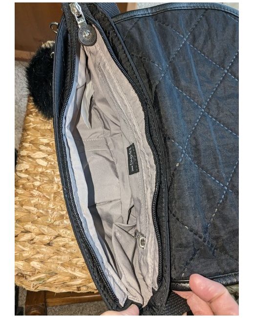 A big fluffy monkey adds a fun touch to this classic Kipling bag. The size of the bag can be enlarged by opening the zip at the bottom of the bag, see photo. This cross-body style features a zipped exterior pocket at the back and a flap over magnetic cover with the main part having a secure zipped closure.