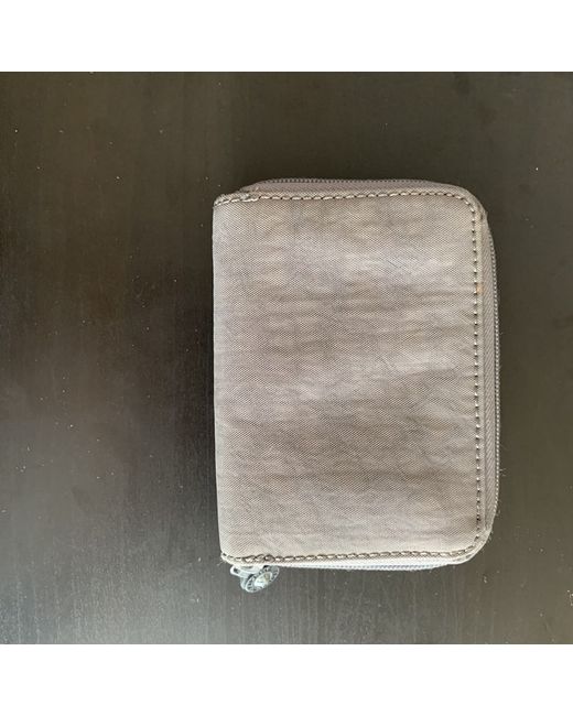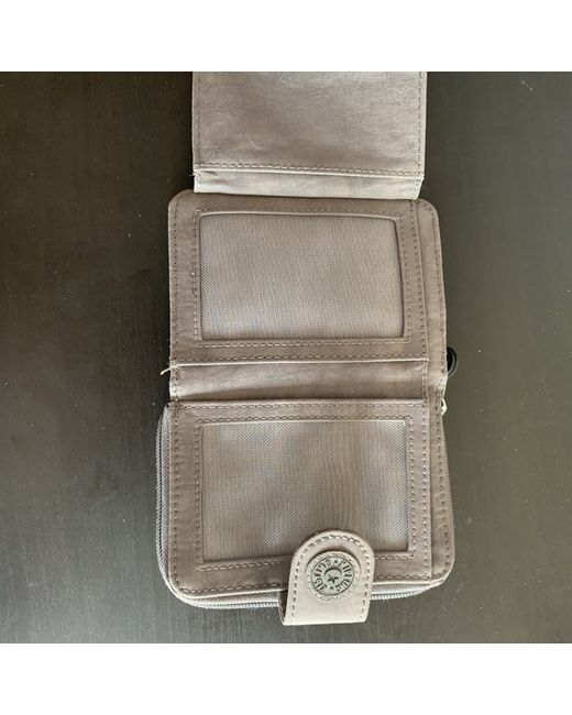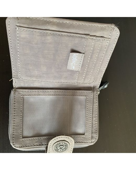 Grey Kipling Wallet with zip for coins has many places for cards and small pictures. Place for notes as well.