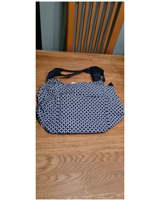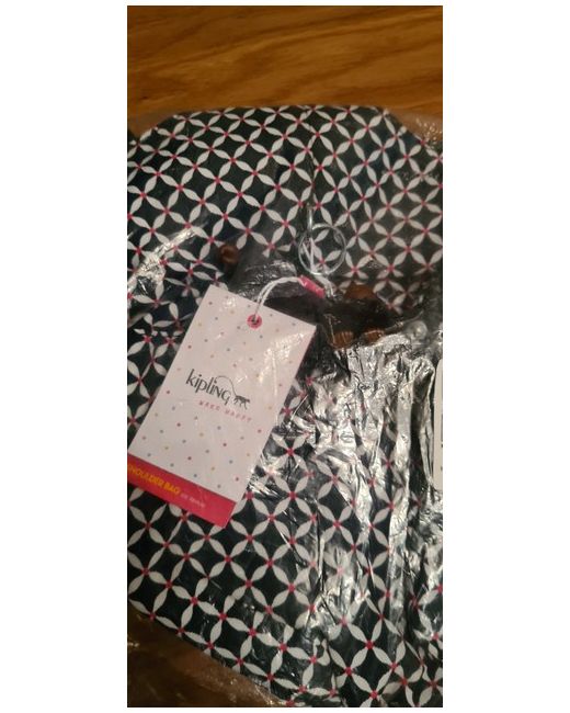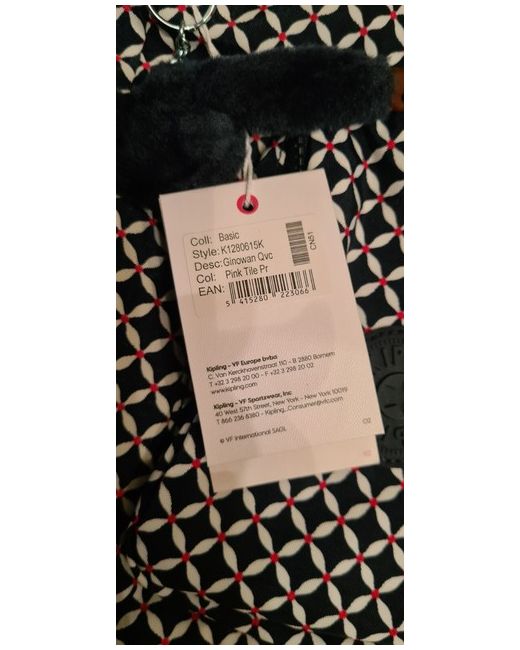 Kipling Signature Monkey Keyring. Blue With White And Pink Pattern. Logo On Front Of Bag.