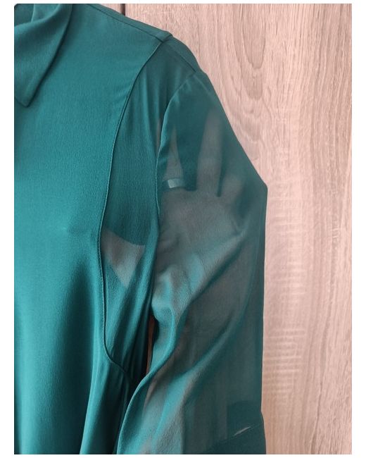Never worn 100% silk calf length dress. hidden buttons, shiffon sleeves with shiffon detail at the bottom. has underlayer dress seperate. the back of the dress is slightly longer hence it sits beautifully. bought as a classic piece to have in my wardrobe but moving houses now. feel free to ask any questions