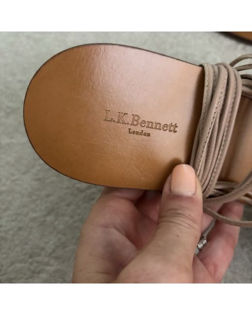 A beautiful neutral flip flop with leg tying leather straps. Beautiful with shorts dresses or jeans to elongate the leg