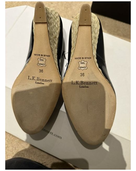 LK BENNETT navy patent court shoe with hessian wedge heel. Size 36. Lovely condition.
