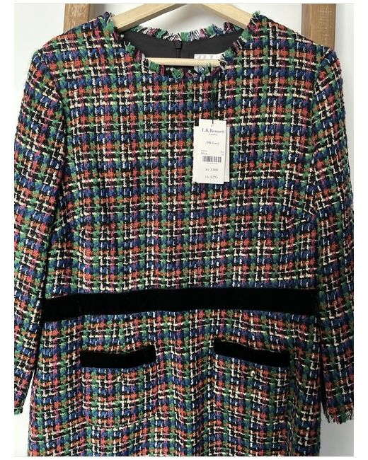 Multicoloured Tweed 3/4 Sleeve Shift DR Lucy Dress UK 16 NWT