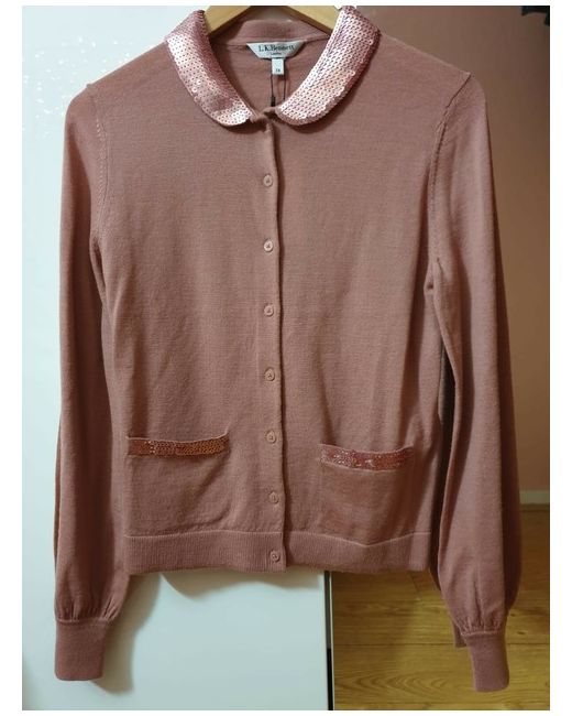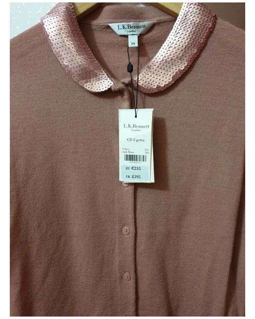 Wool cardigan XS. Condition is New with tags. Dispatched with Royal Mail Signed For® 2nd Class. Dedicated and feminine LK BENNETT's Ugetta Pink Merino Cardigan . RRP £195 With a Silky Collar , pocket trims and cuffed sleeves Perfect for any outfit.