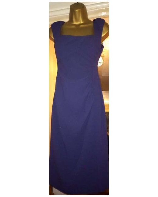This is very flattering fitted dress. Side closure zip. Fully lined, split up the back. The dress sits below the knee depending on your height. 60% Polyester. 6% Elastane.