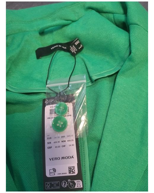 Material composition 66% Polyester, 34% Cotton. Hip length. Button front closure. A trendy jacket for office and leisure.